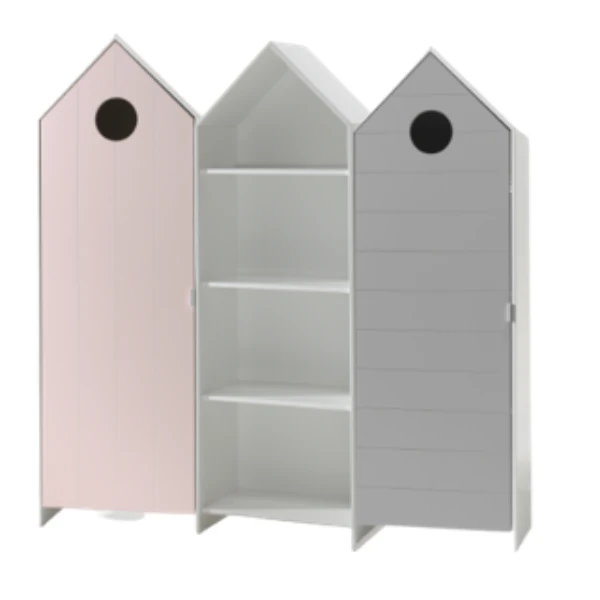 Deze leuke kledingkastjes uit de Casami-reeks zijn prachtig uitgevoerd in het thema strand. De inrichting van de kastjes kun je zelf bepalen bij de montage: 3 legplanken en een kledingroede (belastbaar gewicht 5 kg) of 4 legplanken. Door de combinatie met de Casami-boekenkast creëer je zo heel wat opbergruimte voor alle kleertjes en andere spullen van je kindje. De kledingkastjes en de boekenkast zijn gemaakt van hoogwaardig MDF en zijn wit gelakt, de deuren van de kledingkastjes hebben een roze en grijze kleur en zijn versierd met verticale lijnen. Open de kledingkastjes d.m.v. het raampje in de deur (⌀15 cm) of monteer de bijgeleverde metalen handgreep.