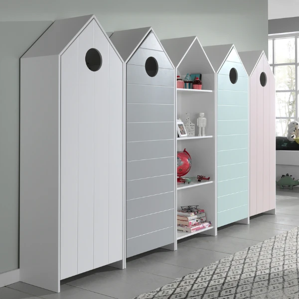 Deze leuke kledingkastjes uit de Casami-reeks zijn prachtig uitgevoerd in het thema strand. De inrichting van de kastjes kun je zelf bepalen bij de montage: 3 legplanken en een kledingroede (belastbaar gewicht 5 kg) of 4 legplanken. Door de combinatie met de Casami-boekenkast creรซer je zo heel wat opbergruimte voor alle kleertjes en andere spullen van je kindje. De kledingkastjes en de boekenkast zijn gemaakt van hoogwaardig MDF en zijn wit gelakt, de deuren van de kledingkastjes hebben een roze, grijze kleur, muntgroene en witte kleur en zijn versierd met verticale lijnen. Open de kledingkastjes d.m.v. het raampje in de deur (โ15 cm) of monteer de bijgeleverde metalen handgreep.