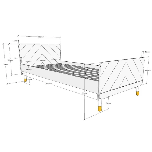 Deย kindermeubelcollectie Billyย combineert een leukย Scandinavisch retro-ontwerpย met moderne details. De meubels zijn gemaakt uitย hoogwaardig witgelakt MDF. Hetย grafische patroon en de goudkleurige detailsย geven de collectie net dat beetje extra. Deze combinatie omvatย een bed en een nachtkastje.