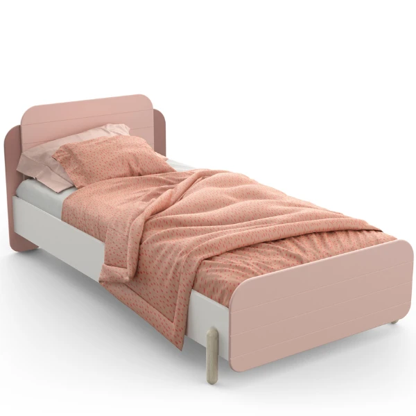 Bed Janne is gemaakt uit gemelamineerde spaanplaat en MDF in mat roze en mat wit. Het hoofdeinde en het voeteneind zijn afgewerkt in verf op waterbasis zonder zware metalen.ย Matras en bedbodem van 90 x 200 cm niet inbegrepen.ย