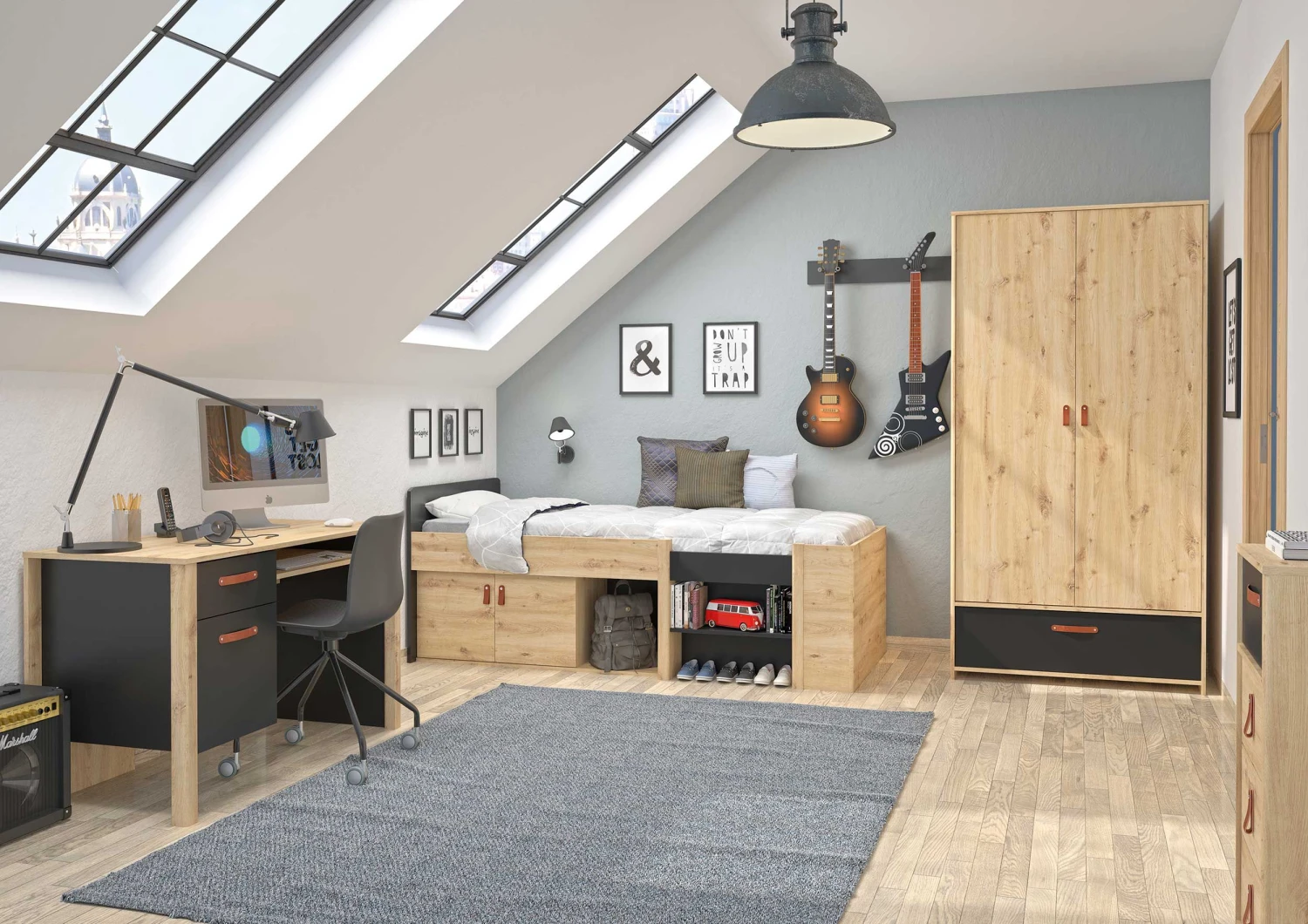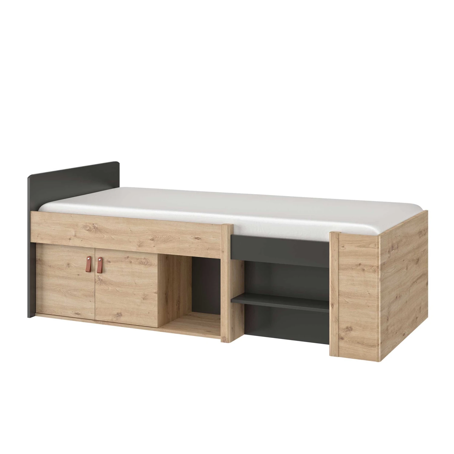 Dit Liam bed is uitgerust met 2 deuren en een vak om wat spullen op te bergen. Het eenpersoonsbed is geschikt voor een lattenbodem en een matras van 90 x 200 cm. Die kun je hieronder aankopen met een korting.ย
