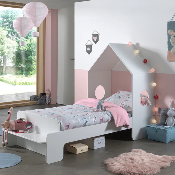 Kinderkamer Casami bestaat uit een kleerkast 58x172x37 cm en een bedhuisje van 90×200 cm (matras van 90×200 cm niet inbegrepen). De kamer is gemaakt uit wit gelakt MDF.ย