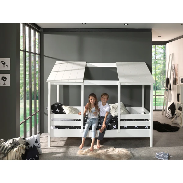 Bedhuisje Hester biedt jouw zoon of dochter niet alleen een prachtige slaapplaats, maar zorgt ook voor een decoratieve toets in de kinderkamer. Dit huisbed is zelfs voorzien van een halfopen dak en geeft de kinderkamer meteen een hippe en gezellige uitstraling. Rondom is het bed uitgerust met eenย uitvalbeveiligingย zodat ook jouw peuter en kleuter in alle veiligheid in dit eenpersoonsbed kunnen slapen.