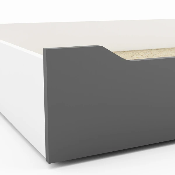 Bedlade Gerry voor bed Gerry is gemaakt uit gemelamineerde spaanplaat in mat wit en lichtgrijs. De lade is geschikt voor een matras van 90 x 190 cm, deze is niet inbegrepen.