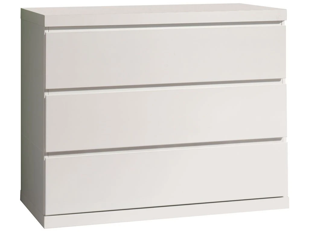 Deze commode kan zowel in de kinder- als babykamer Lara geplaatst worden. Dit witte opbergmeubel heeft 3 lades en is gemaakt uit MDF. De horizontale lijnen zorgen voor een leuke toets. De lades sluiten zachtjes dankzij het soft-close systeem.
