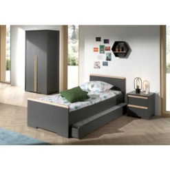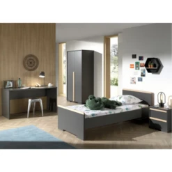 Bed Bzone 90x200 Cm Met Bedlade, Bureau En Ledverlichting - Antraciet