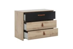 Eenpersoonsbed Morris, geschikt voor een lattenbodem en matras van 90×200 cm. Gemaakt van spaanplaat met imitatieprint van blonde eik. Optioneel: bedlade