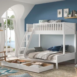 Eenpersoonsbed Nano, vervaardigd uit spaanplaat, uitgerust met 2 lades.