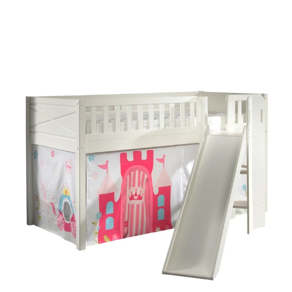 Halfhoogslaper Scottie 90×200 Cm Met Glijbaan En Prinses-speelgordijn-wit