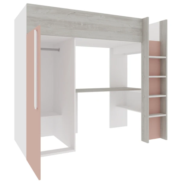 Met de aankoop van hoogslaper Bo9 sla je drie vliegen in รฉรฉn klap. Deze hoogslaper beschikt namelijk niet alleen over een bed, maar ook over een bureau (142.4×45 cm) en een kledingkast. De kledingkast is bovendien voorzien van een kledingroede en een legplank. Tijdens het ontwerpproces werd veel aandacht besteed aan een slim en plaatsbesparend design. Naast deze drie-in-รฉรฉn-formule werd er namelijk ook gekozen voor een rechte trap. Dit om zo weinig mogelijk cm te verliezen. De treden van deze trap kun je zelf voorzien van anti-slipstroken. Deze worden bij de aankoop geleverd en kun je makkelijk zelf aanbrengen. Hoogslaper Bo9 is gemaakt uit spaanplaat en werd afgewerkt met eenย hoogwaardige melaminelaag. Het biedt plaats voor een matras van 90 bij 200 cm. Dit matras is niet inbegrepen, maar kan wel via onze website aangekocht worden. Een lattenbodem is niet noodzakelijk.ย