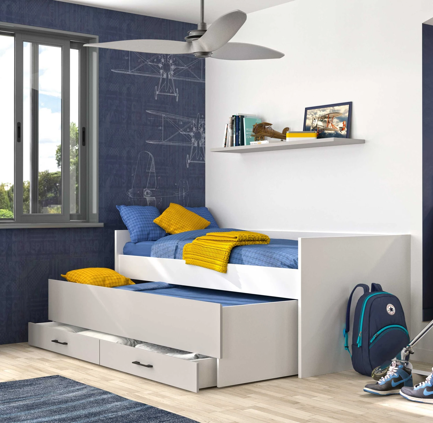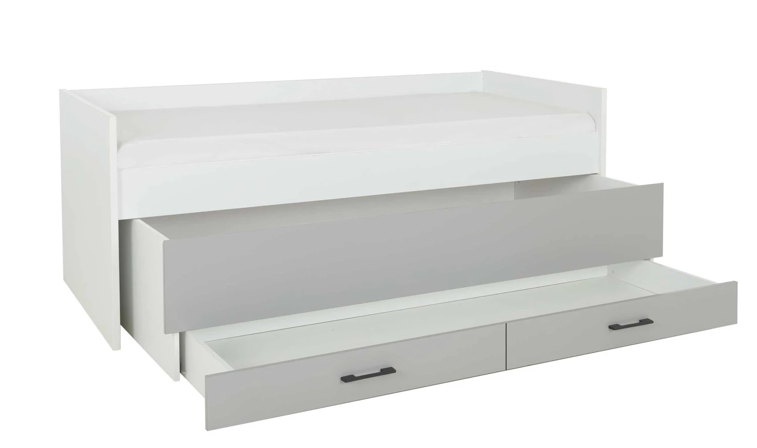 toestand (beschikbare hoogte 24,5 cm). De onderste bedlade heeft antracietkleurige handgrepen en biedt je opbergruimte voor bedlinnen en andere spullen.
