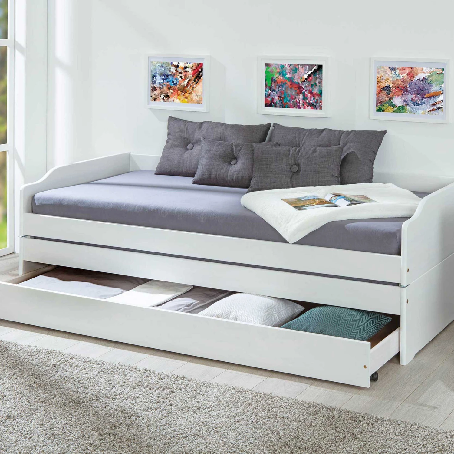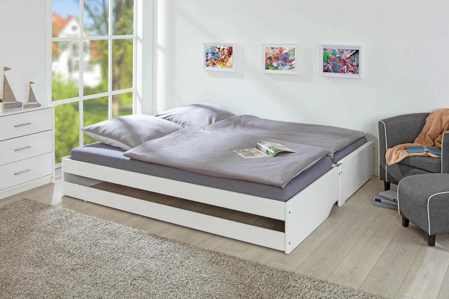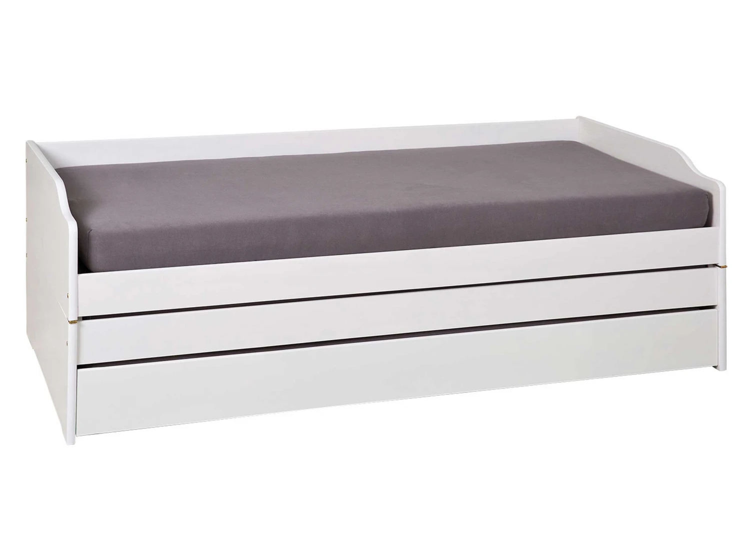 Het kajuitbed Lothar is een multifunctioneel meubel waarmee je 3 slaapplekken kan creรซren! Superhandig voor de logeerkamer of voor de kamer van tieners die dol zijn op gezellige sleepovers. Het bed is gemaakt uit massief dennenhout en heeft een white wash afwerking. De lattenbodems zijn inbegrepen. Geschikt voor een matras van 90×200 cm en 2 dunnere matrassen van 90×190 cm.