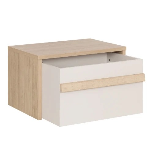 Kinderbankje met opbergruimte Otto, met 1 lade. Gemaakt uit spaanplaat in het wit en met kastanjedecor.