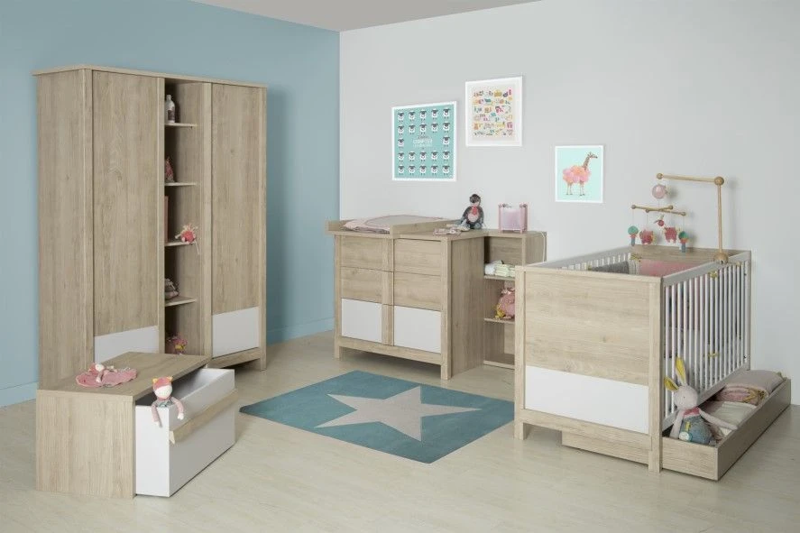 In een baby- en kinderkamer kan je nooit opbergruimte genoeg hebben. De Otto-collectie is zo gemaakt dat je op een efficiënte manier veel opbergruimte kan voorzien. Deze kinderbank is bijvoorbeeld 70 cm lang en 42 cm hoog en is één grote koffer om speelgoed of andere spullen in op te bergen. Tegelijkertijd kan het ook dienen als bank voor kinderen tot 5 jaar, of als nachtkastje. Ontdek ook de andere meubelen van deze collectie uit spaanplaat met kastanjedecor en witte accenten.