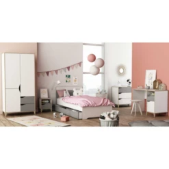 Bed Gerry 90 X 190/200 Cm Zonder Bedlade-lichtgrijs/mat Wit/Kronberg Eik