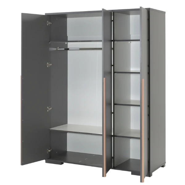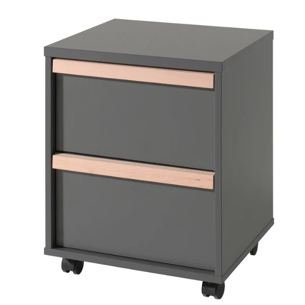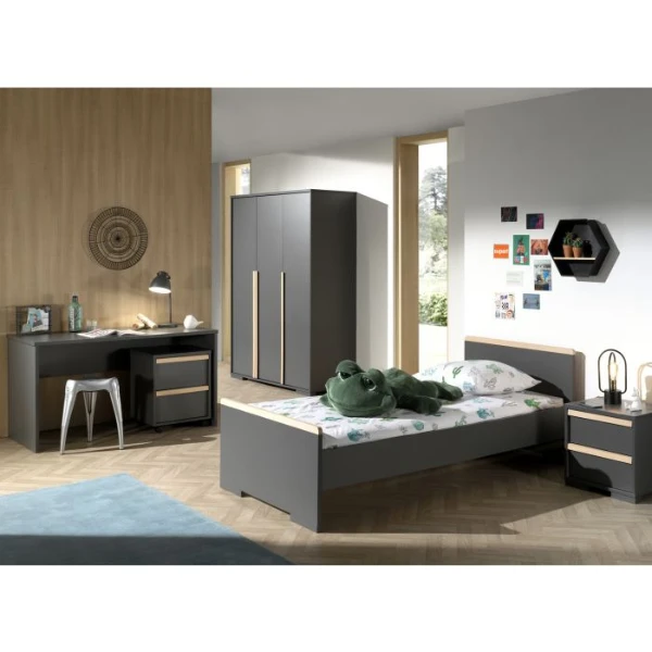 Kinderkamer London is gemaakt uit gelamineerde spaanplaat in antraciet met accenten in beukenhout.ย