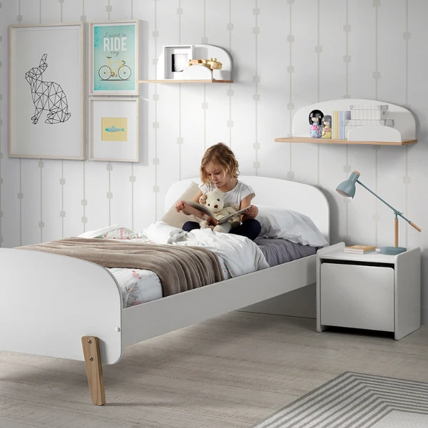 Dezeย kinderkamer Kiddyย van het kwalitatieve Belgische merkย Vipackย zal ongetwijfeld een van je favorieten worden! De kamer bestaat uit eenย kinderbed,ย eenย nachttafel,ย 2 wandplankjesย in verschillende formaten en een speelkoffer. Deze meubelen zijn wit en zorgen voor eenย rustgevende sfeerย in de kinderkamer. Je zal versteld staan van de uitstekende kwaliteit van deze kinderkamer Kiddy!ย