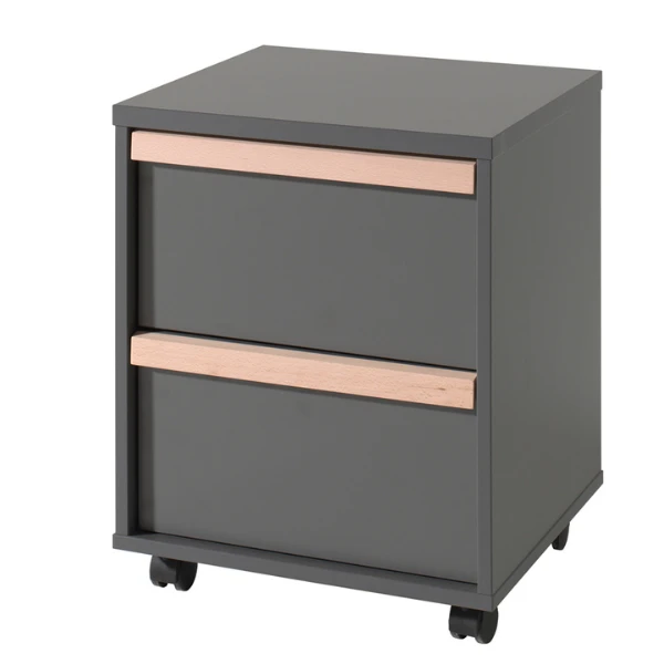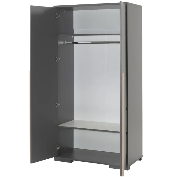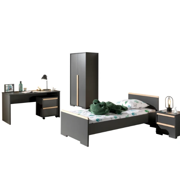 Kinderkamer London is gemaakt uit gelamineerde spaanplaat in antraciet met accenten in beukenhout.ย