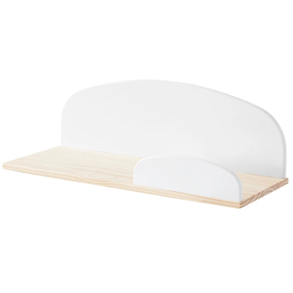 Kinderkamer Kiddy bestaat uit een bed 90×200 cm met lattenbodem (matras van 90×200 cm niet inbegrepen) , nachttafel 40x36x41 cm, een bedhekje 91x6x25 cm, een wandplankje van 65x25x22 cm, nog een wandplankje van 45x25x22 cm en een speelkoffer 80x39x48 cm.