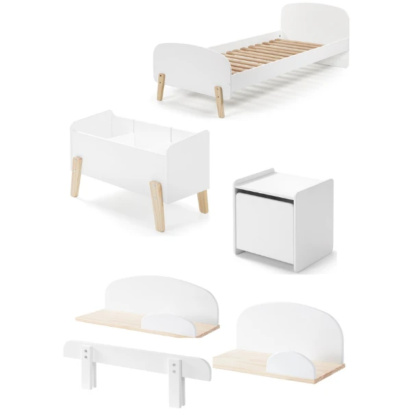Dezeย kinderkamer Kiddyย van het kwalitatieve Belgische merkย Vipackย zal ongetwijfeld een van je favorieten worden! De kamer bestaat uit eenย kinderbed,ย eenย nachttafel, een bedhekje,ย 2 wandplankjesย in verschillende formaten enย een speelkoffer. Deze meubelen zijn wit en zorgen voor eenย rustgevende sfeerย in de kinderkamer. Je zal versteld staan van de uitstekende kwaliteit van deze kinderkamer Kiddy!ย
