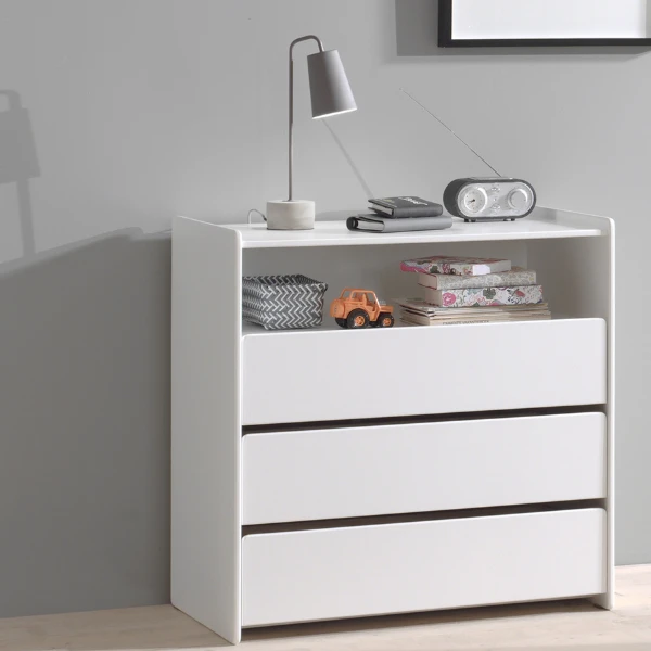 Kinderkamer Kiddy bestaat uit een bed 90×200 cm met lattenbodem (matras van 90×200 cm niet inbegrepen), nachtkastje 40x36x41 cm en commode 90x47x92 cm.