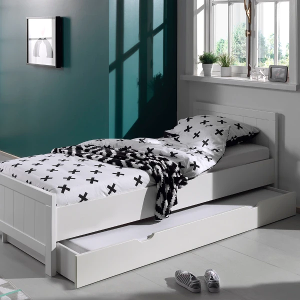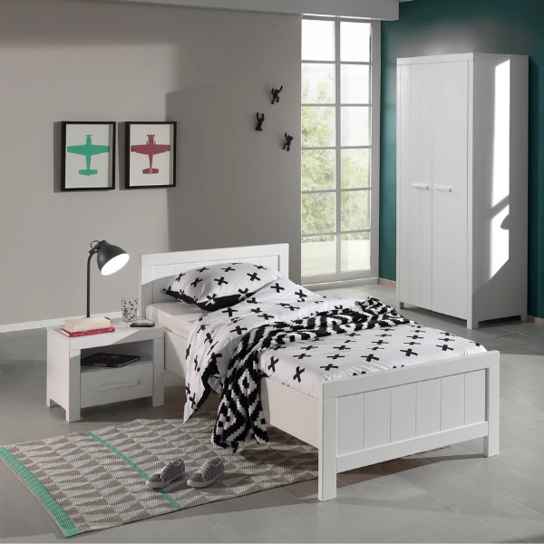 Kinderkamer Erik is gemaakt uit witgelakt massief dennenhout en MDF.ย