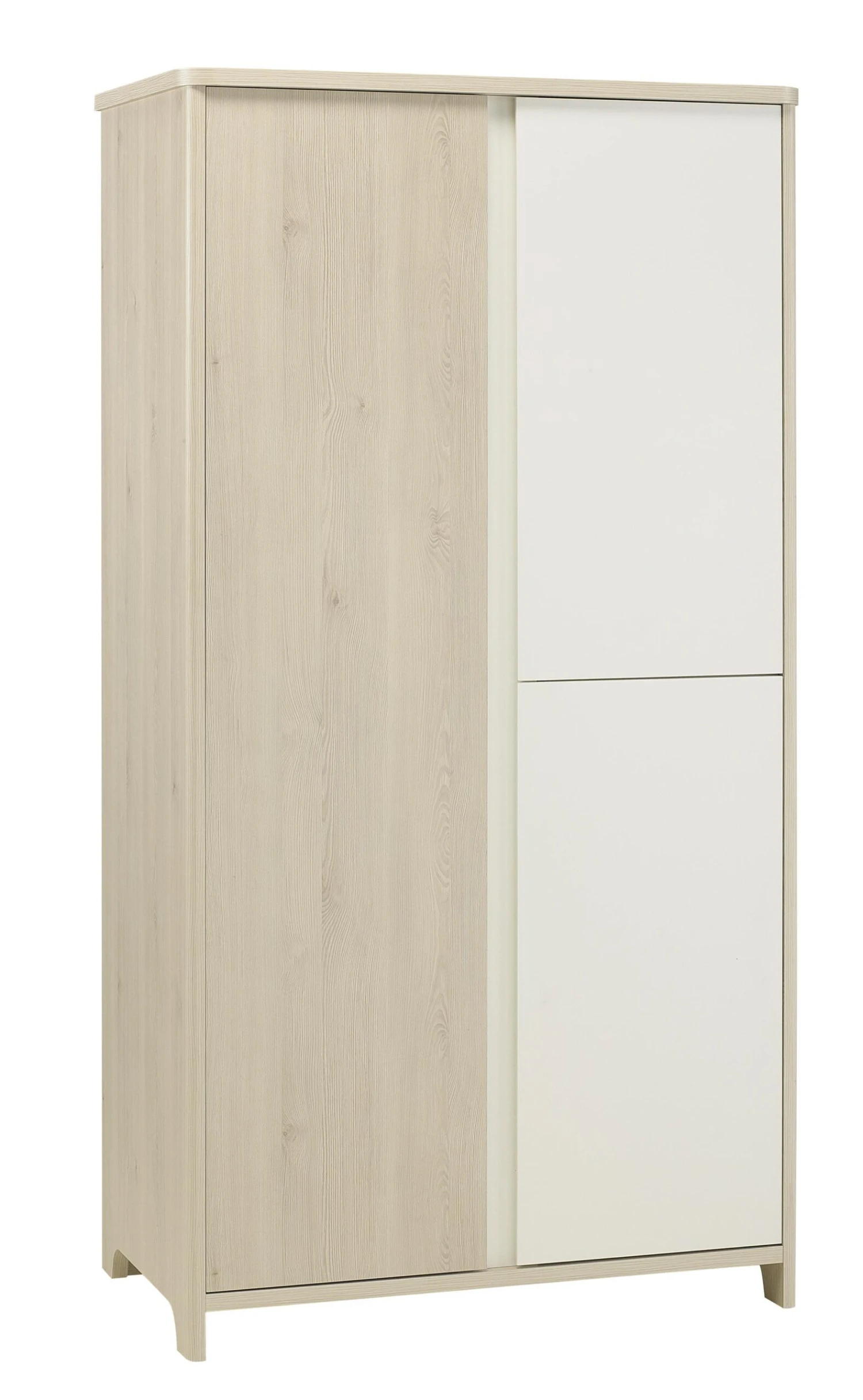 Kledingkast Binno met 3 deuren. Gemaakt uit spaanplaat in het wit en met decor van gebleekte den.