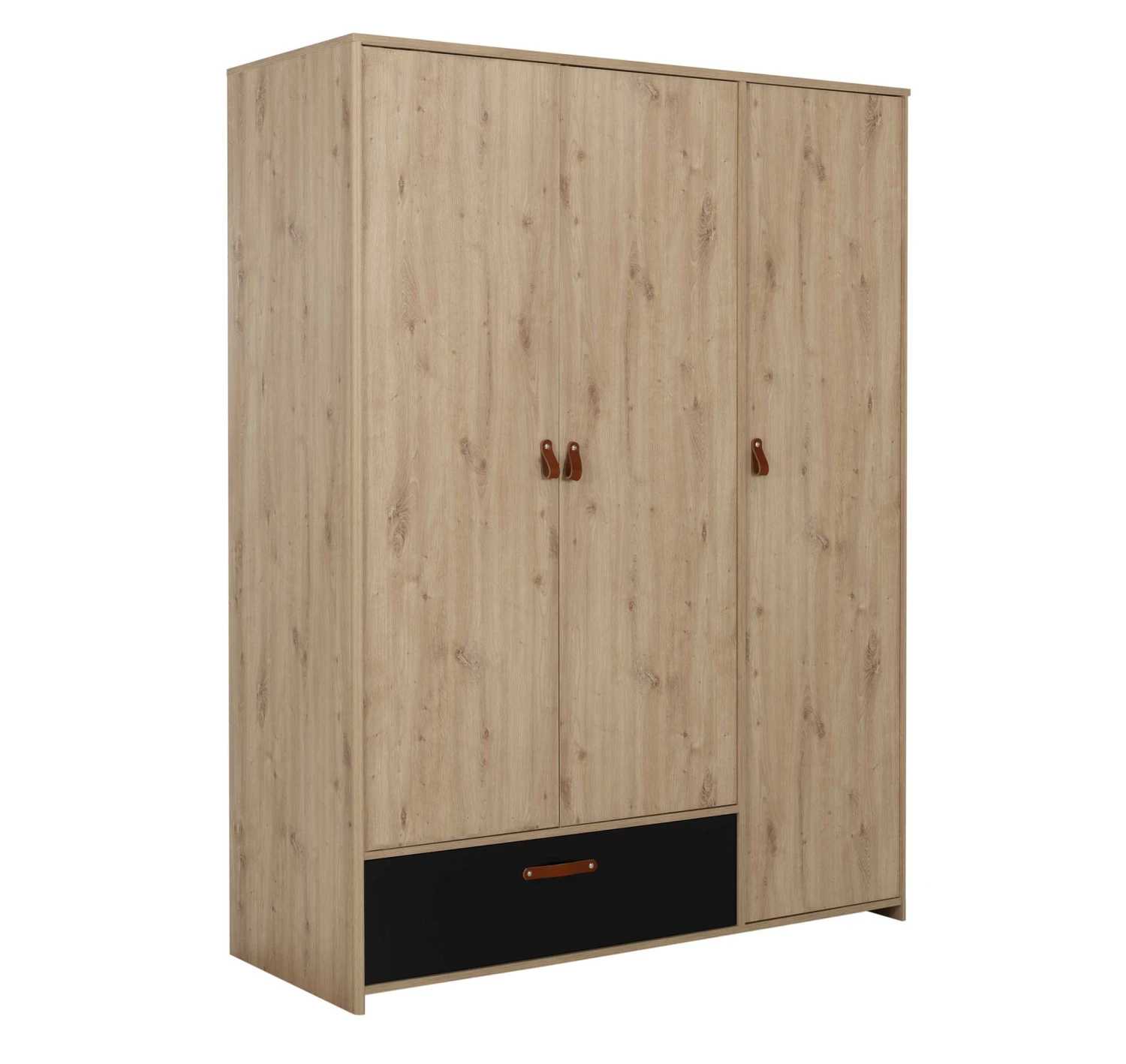 Deze Liam kledingkast is onderaan uitgerust met een grote lade en met 3 deuren. Achter de deuren vind je een kledingroede en 4 legplanken.