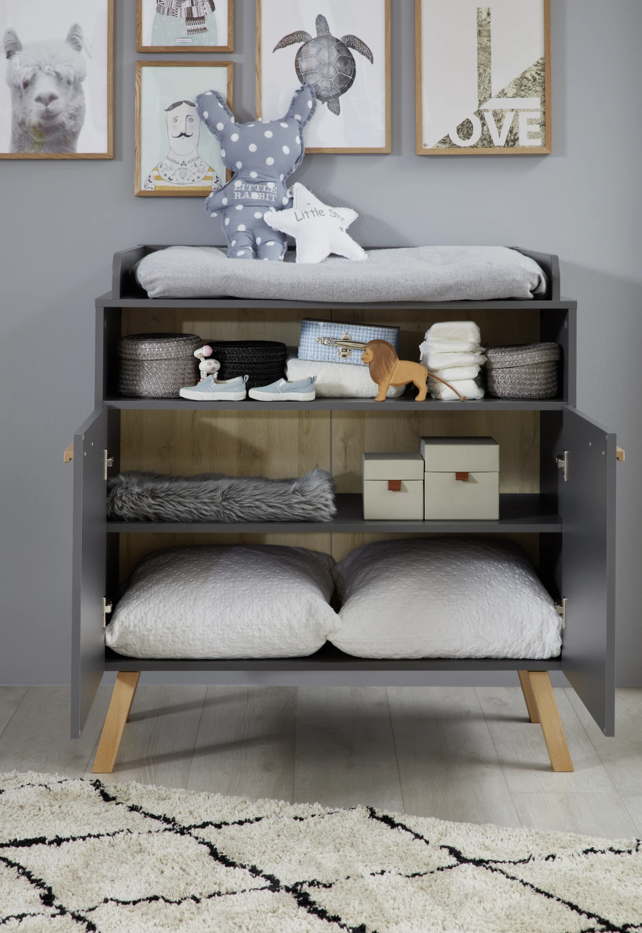 Luiertafel Met Opbergruimte Mats | 96 X 78 X 105 Cm | Donkergrijs