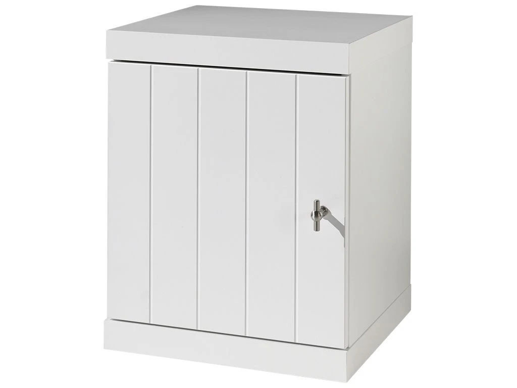 Bij een kinderbed hoort natuurlijk ook een nachtkastje. Deze nachttafel in MDF is wit van kleur en beschikt over een deur met daarachter 2 opbergvakken. Jouw kleine schat kan er dus allerlei spulletjes opbergen. De verticale lijnen zorgen voor een leuk effect.