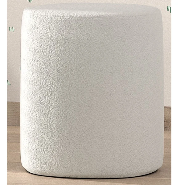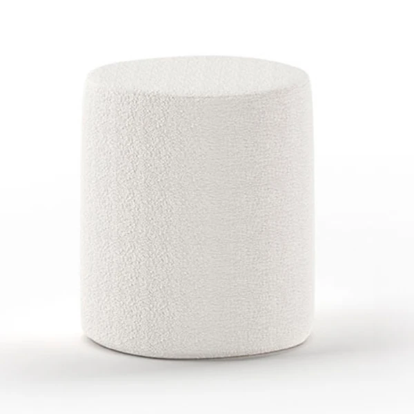 Poef Maeva ø41×41,5cm met bekleding in witte bouclé-stof