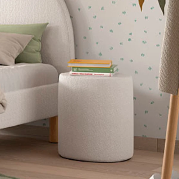 Nachttafeltje / Poef Maeva 41x41cm – Witte Bouclé Stof