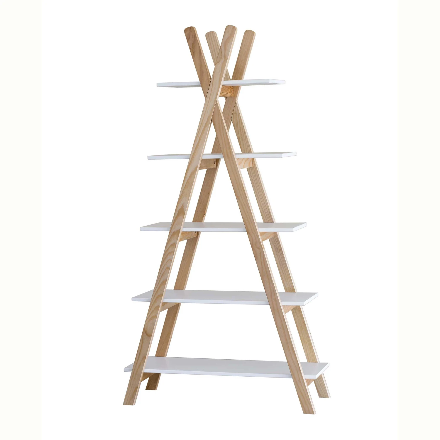 Wit rek Tipi in Scandinavische stijl, met 5 legplanken. Gemaakt van MDF en hout.