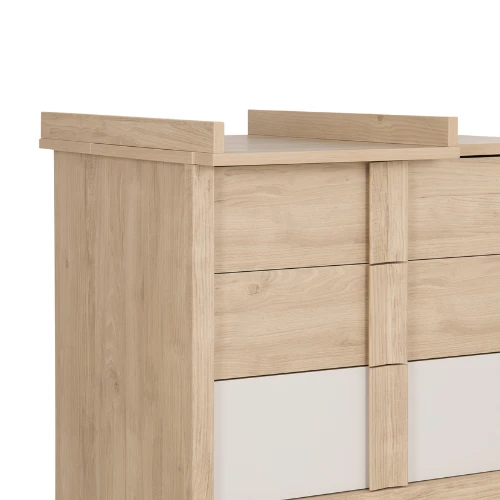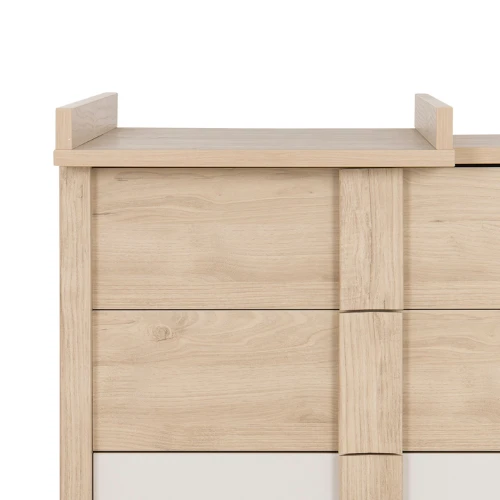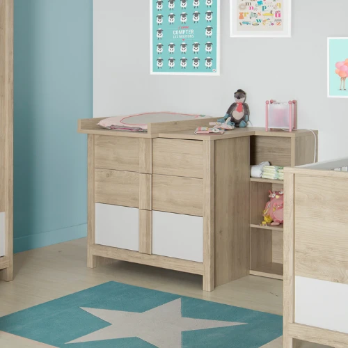 Artikel om van commode Otto een verzorgingstafel te maken. Gemaakt uit spaanplaat met kastanjedecor.ย